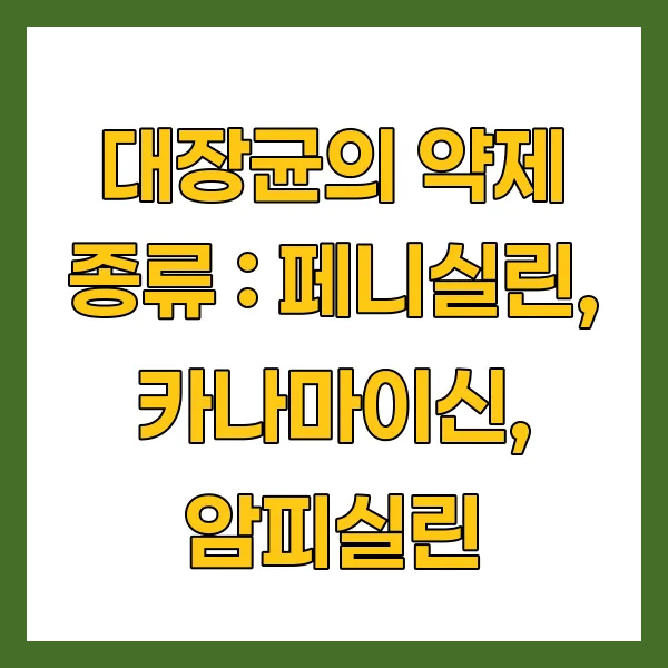 대장균의 약제 종류 : 페니실린, 카나마이신, 암피실린