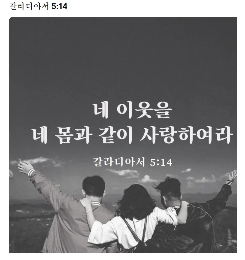 '온 율법은 네 이웃 사랑하기를 네 몸 같이 하라 하신 한 말씀에 이루었나니 '