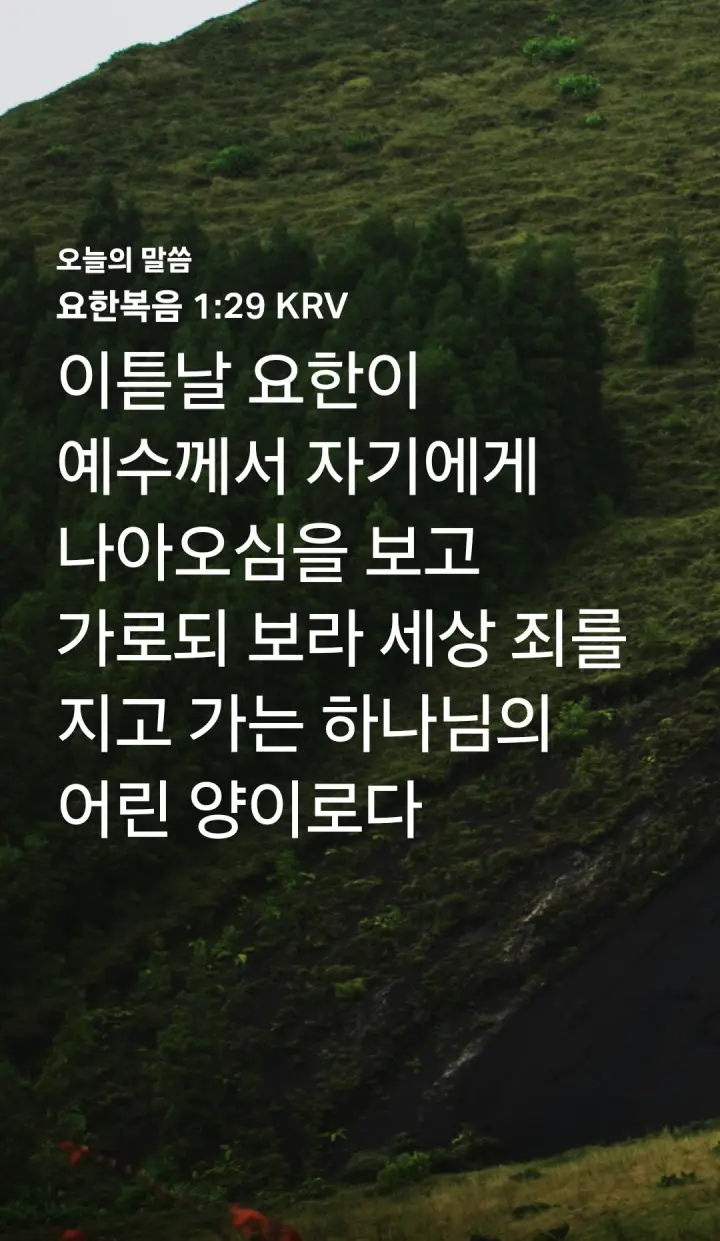 '이튿날 요한이 예수께서 자기에게 나아오심을 보고 가로되 보라 세상 죄를 지고 가는 하나님의 어린 양이로다 '