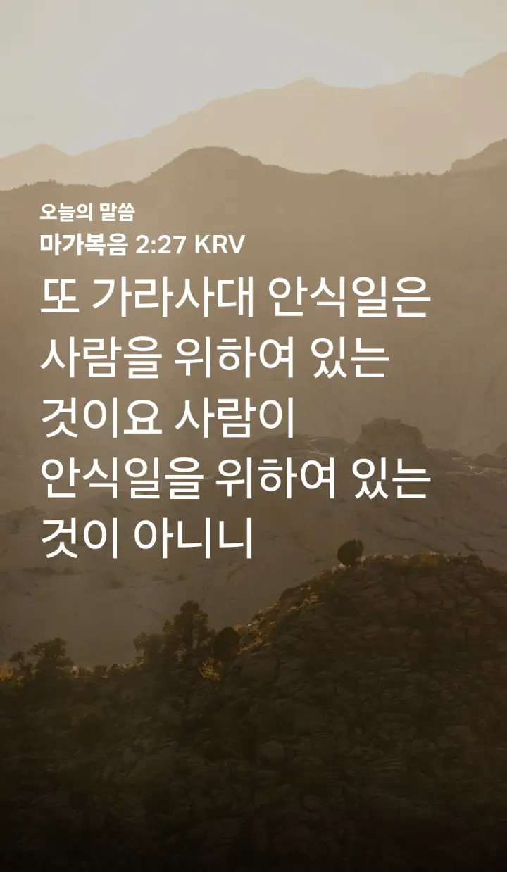 '또 가라사대 안식일은 사람을 위하여 있는 것이요 사람이 안식일을 위하여 있는 것이 아니니 '